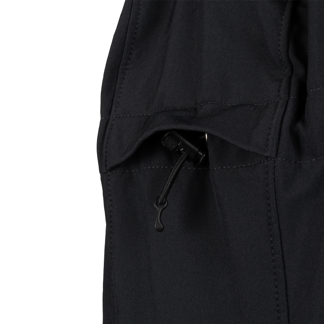 Ściągacz dolnej części kurtki z regulacją poprzez linkę w głównej kieszeni – pozwala idealnie dopasować obwód i zapobiega podwiewaniu.